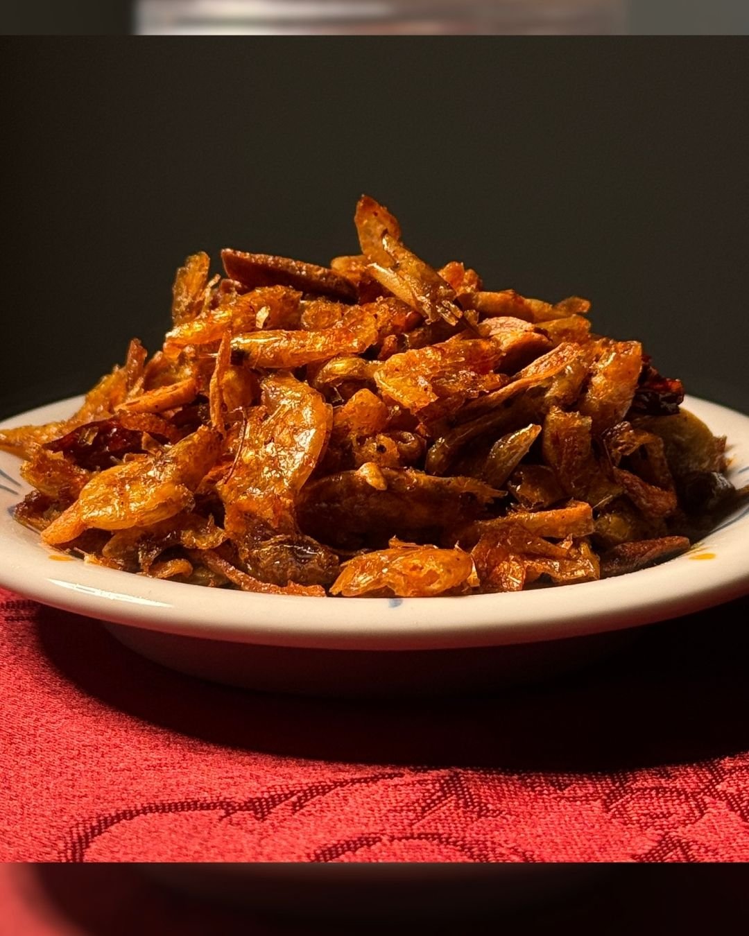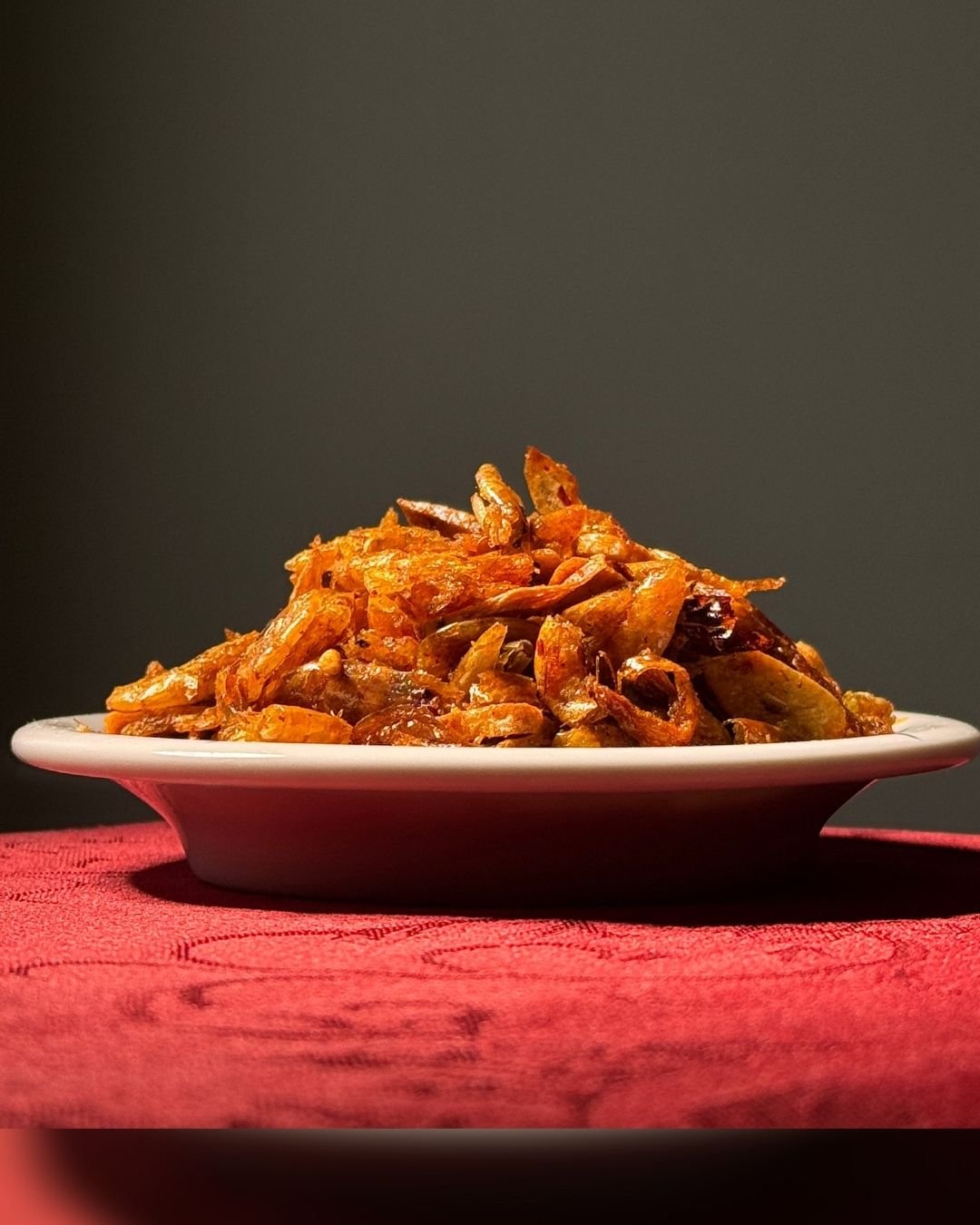 We don’t take shortcuts. We start with the highest quality sea-sourced dried shrimp (shutki), thoroughly cleaned to remove any overpowering “fishy” odor, leaving only a rich, aromatic umami flavor. We slow-roast our hand-sliced garlic, onions (beresta), and fiery red chilies in 100% fresh, clean cooking oil.